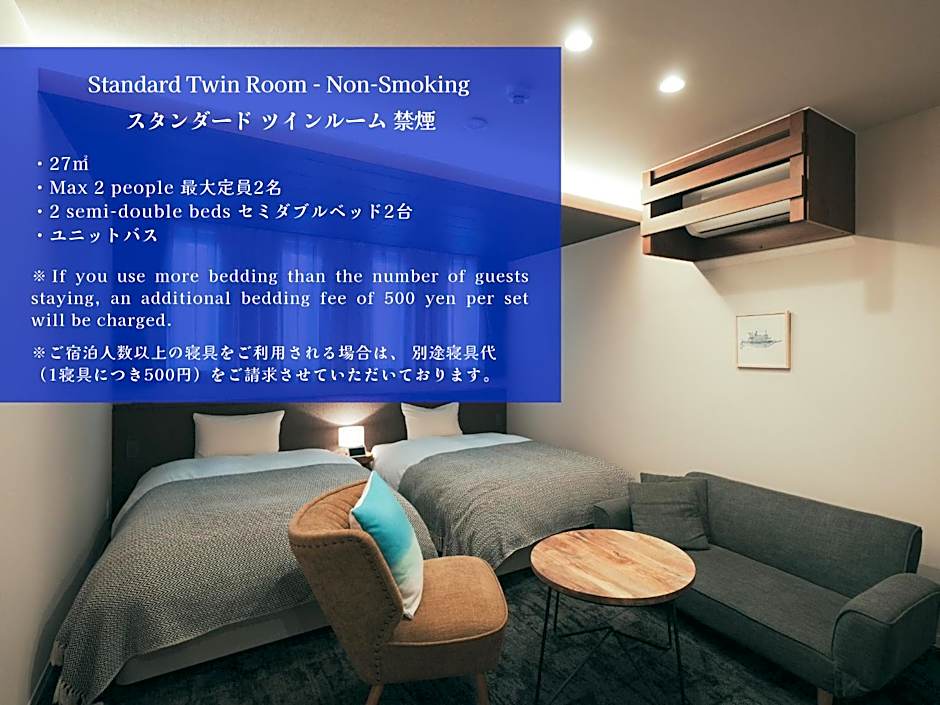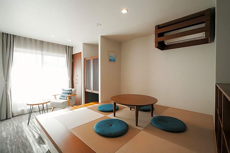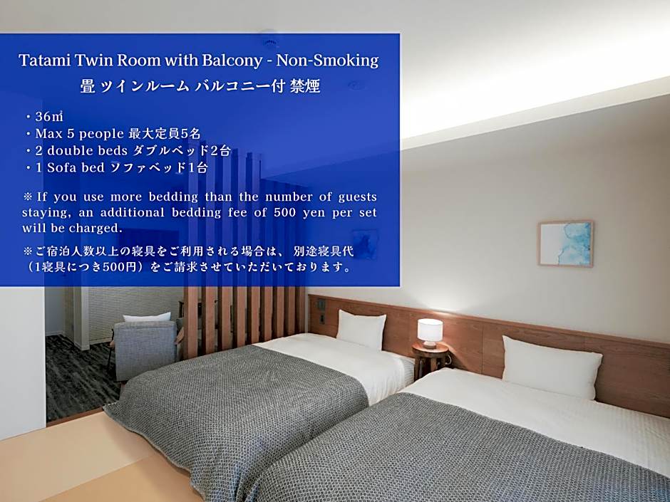The spacious twin/double room provides air conditioning, tatami, a balcony with a quiet street view as well as a private bathroom featuring a bath. The unit offers 3 beds.